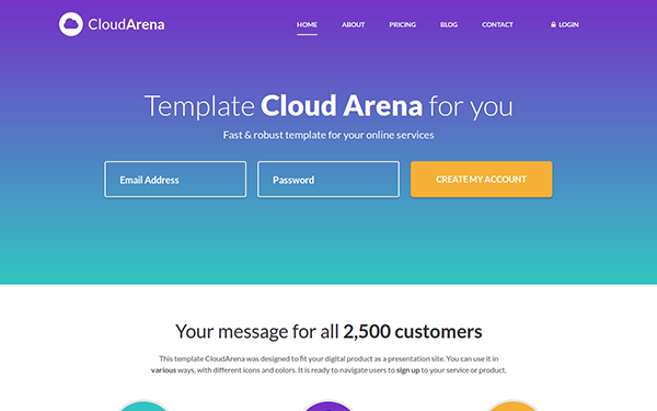 This template CloudArena was designed to fit your digital product as a presentation site. You can use it in various ways, with different icons and colors. It is ready to navigate users to sign up to your service or product.